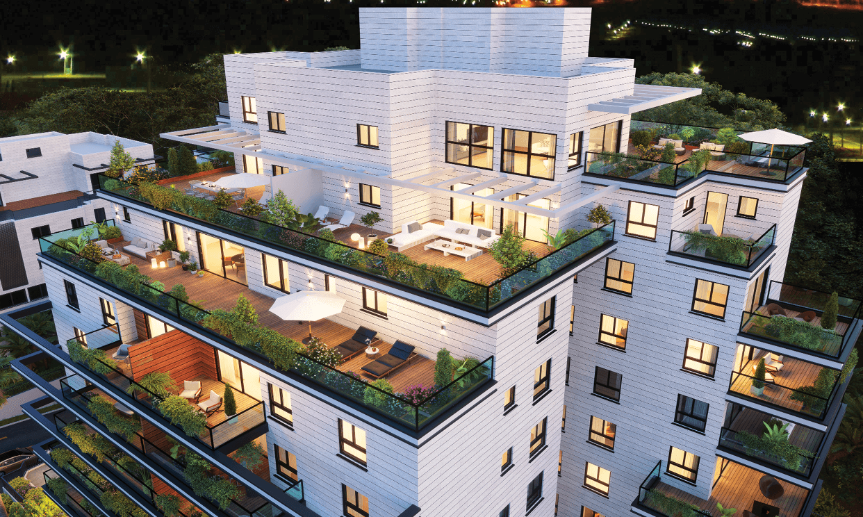 לדירות הגן ומרפסות ענקיות בפנטהאוזים ובדירות המיוחדות.